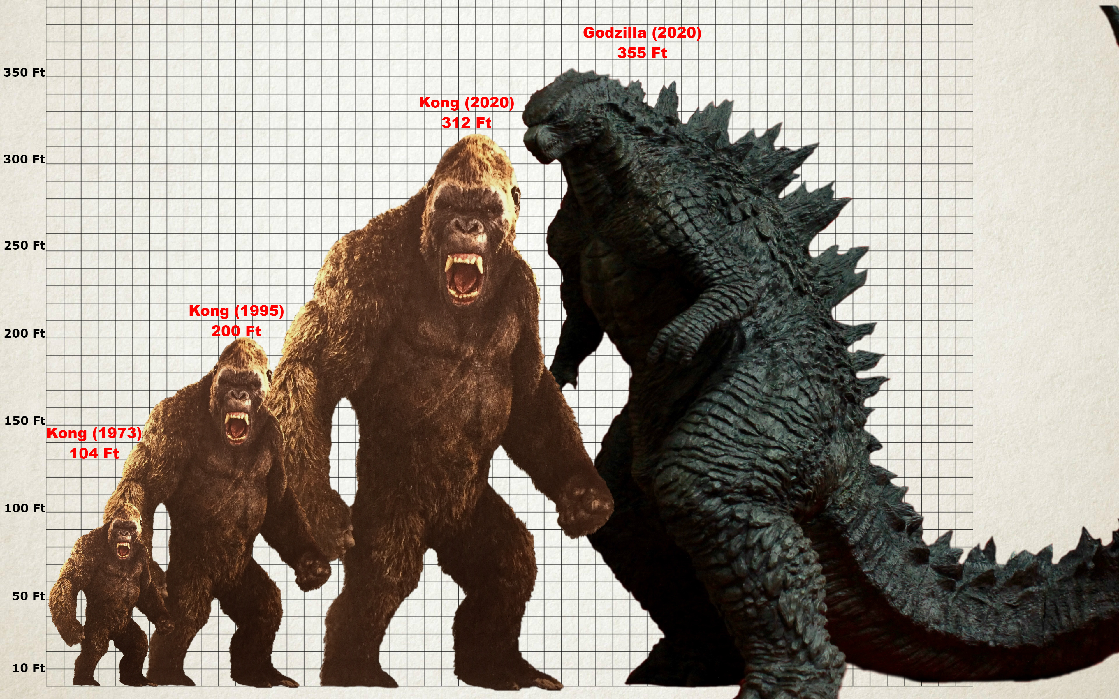 How many feet is godzilla 2020. In the 1998 film and animated series TriStars Godzilla is portrayed as a territorial piscivorous 180 feet 5486 m tall mutated lizard. Godzilla also dubbed Titanus Gojira is one of the main kaiju protagonists of the MonsterVerse franchise alongside KongHe first appeared serving as one of the main protagonists of the 2014 film of the same name alongside Ford BrodyHe also appeared as a cave painting in the 2017 film Kong. King of the Monsters 2019 The Following 2013 and Damages 2007.